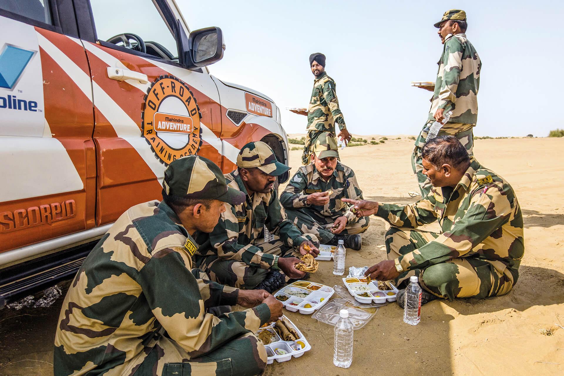 Cut to present day and there I was, smack in the middle of a troop of combat fatigues. An excited group of 60 odd men, two complements of 30 drawn from each of the two BSF headquarters at Jaisalmer, who had made the desert their home. It was a mixed bunch of drivers who had been assigned from the BSF to attend the course that we at Mahindra had decided to call Desert Survivor. Some had tonnes of experience while others were novices and between them they drove everything from a quarter tonne SUV to 5-tonne 4x4 trucks. No, these weren’t ordinary men. How can they be, when they will form India’s first line of defence?