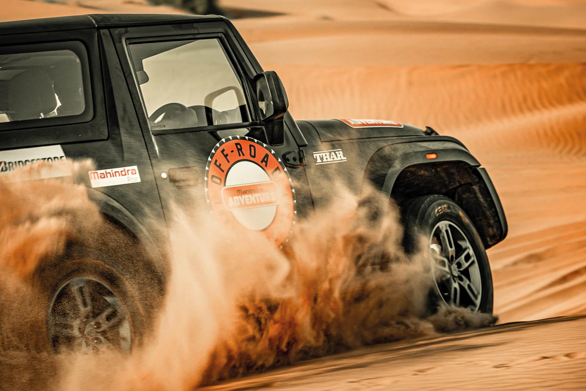 They were just about getting the hang of things when we decided to play spoilsports and rob them of their newfound confidence. To make sure that we would be able to teach them all that we ourselves had learnt at the Academy, we introduced certain sharp bends that would break the momentum of the vehicle. Learning to deal with situations where the vehicle’s momentum has to be broken is a very useful skill to have in off-road conditions, and the desert sands are no different. We also presented them with some cross axle situations where one wheel of the axle is dug in while the other wheel is up in the air, thereby also demonstrating maximum wheel articulation. The participants quickly realised that these more powerful Scorpios tended to get into these tricky cross axle situations more easily than the vehicles they were used to since the engine’s grunt also enhanced the vehicle’s ability to dig up more sand. This automatically means the driver has to measure his throttle input continuously when driving on sandy terrain. To be able to deal with such cross axle situations, which may sometimes result in very dramatic wheel articulation, one must also familiarise oneself with the vehicle itself. It is important to know the limit of the vehicle’s suspension system. Wheel placement is equally important in these circumstances and one must learn how to steer the vehicle so that one doesn’t lose traction entirely.