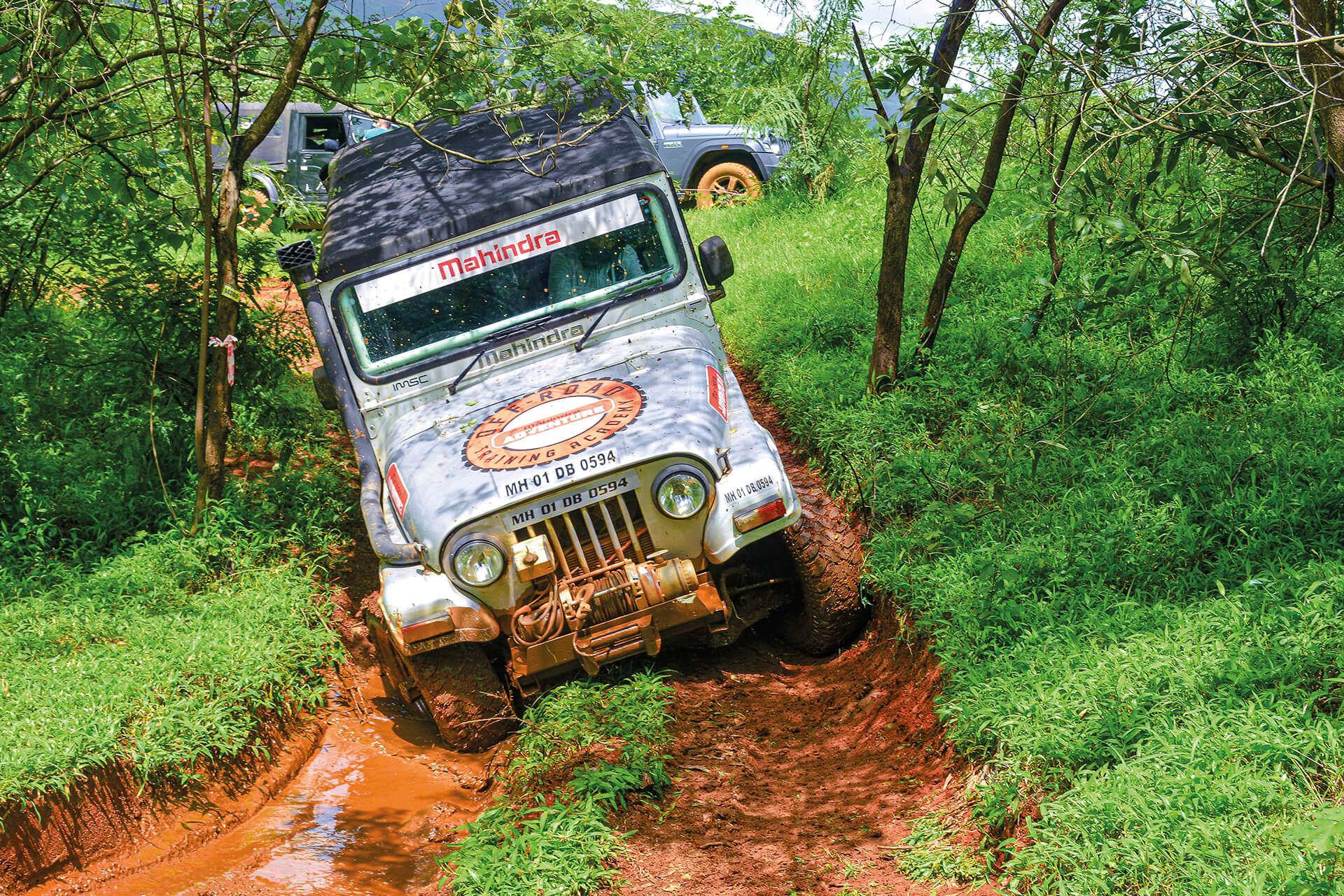 Trail 4: Pond rush Day 2 dawns bright and sunny, Ryan murdering the buffet table, me with a new found confidence in myself and a tonne more in the Thar. And with Sirish right by my side. I remind myself that these fellows do this for fun! Haven’t they heard of a spa? The day starts off with driving through a pond and then going up a slope. We’re told to do this without 4x4 to see how difficult — and impossible — it is, and the difference the 4WD hardware makes in sticky situations. Getting a seat of the pants feel and understanding what the Thar is doing is the aim of this course. I go through the pond without a hitch, steady on the throttle, not letting up, and we’re through. Now building momentum to go up the slope, I try a couple of times but slide back down, the rear wheels spinning aimlessly. Then shifting in to 4WD, I immediately feel the traction, a bit of gas and I’m up and out in a jiffy. What a difference! And now that I’ve had the time to process all the information fed to me over the past day, instead of blindly following orders, I now understand what the Thar’s doing. I’m thinking more about the mechanics of the Thar and the lessons Manish has given us at the start of the day are being put to practice. Trails 5 and 6 are similar lessons in reinforcing where to gas, where to let go, crawl and inch. And then we come to Trail 7.